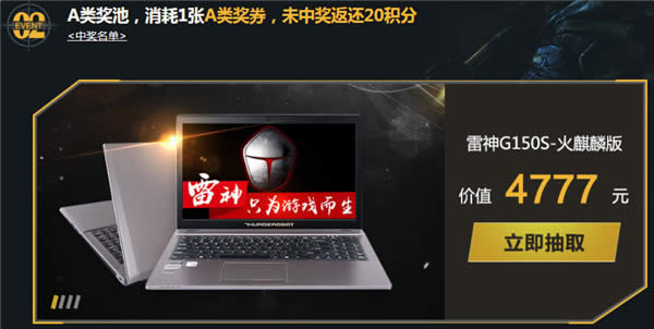 2)A类奖池,消耗1张A类奖券,未中奖返还20积分