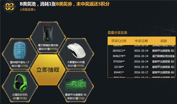 3)B类奖池,消耗1张B类奖券,未中奖返还5积分