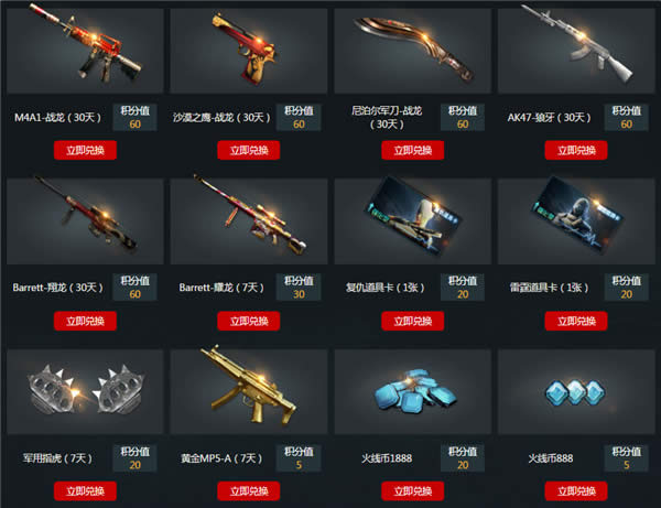 4)活动期间,累积积分可兑换道具。100%可兑换,所有道具限兑换1次。