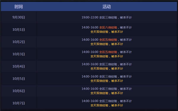 1)10月1日-10月3日,每日加入任意一局游戏,(1个小时后)可立即开启一 个英雄宝箱,活动期间可累积开启3次。(每个英雄宝箱限开启1次)