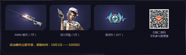 4)任性返场 礼包领不停。2016年10月8日-10月13日,任性返场,可立即领取礼包5件套。每个QQ账号仅限领取1次。