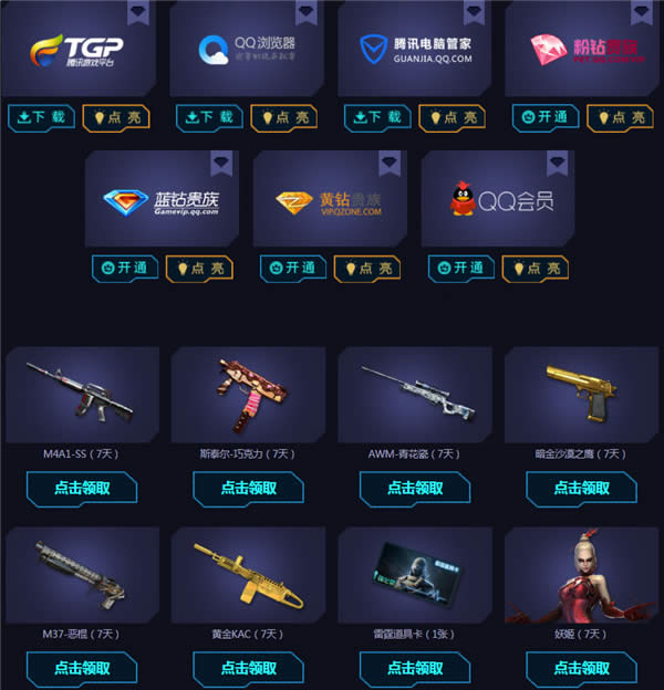 6)活动期间,用户每点亮一个特权图标即可领取1件装备,每件装备最多领取 1次。