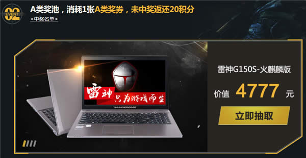 2)A类奖池,消耗1张A类奖券,未中奖返还20积分