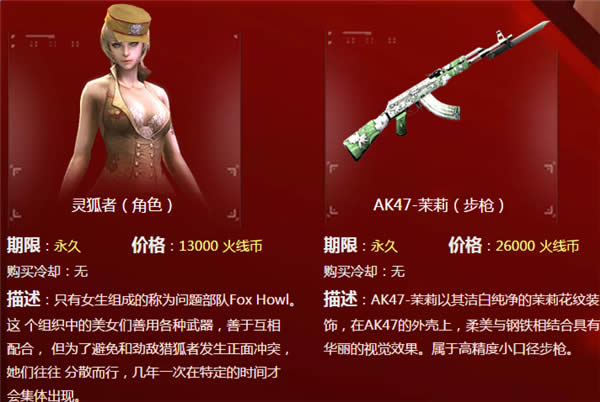 9月1日起,将有新一批强力稀有的道具上架火线币商城,并且,火线币商城内永久道具只增不减。火线币商城的更新分两块,一是新增永久道具灵狐者(角色)和茉莉AK(步枪),另一个是期限道具做了一些调整变动。小编我最喜欢的灵狐MM,终于有永久了,再也不用每个月花费45块大洋了,谁说天下没有免费的午餐~穿越火线就有免费的永久道具!!!