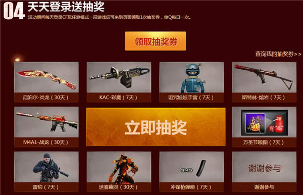 4、活动期间每天登录CF玩任意模式一局游戏后可来到页面领取1次抽奖券,单Q每日一次;