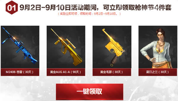 1)9月2日-9月10日活动期间,可立即领取枪神节4件套