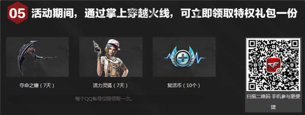 5)活动期间,通过掌上穿越火线,可立即领取特权礼包一份