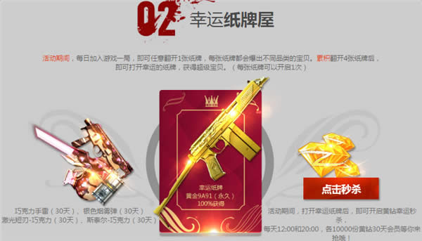 活动期间,打开幸运纸牌后,即可开启黄钻幸运秒杀,