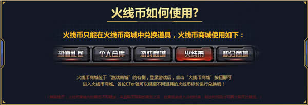 火线币只能在火线币商城中兑换道具,火线币商城使用如下: