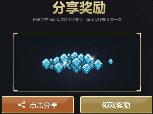 分享到空间可以得30火线币,每个QQ号仅得一次
