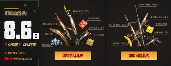 cf8月6日火线大事件活动已经正式开启了,本次活动为CF游戏手机端与电脑端双端盛典,登陆CF端游和CFM手游完成相应的任务即可获得各类大礼包,以及英雄武器抽奖机会,下面就随小编一起看看cf8月6日火线大事件活动的具体内容吧。