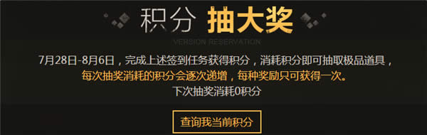 7月28日-8月6日,完成上述签到任务获得积分,消耗积分即可抽取极品道具,