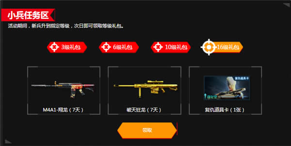 活动期间,新兵升到指定等级,次日即可领取等级礼包。