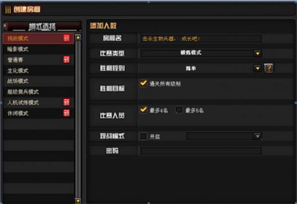 建立试炼挑战模式的房间,挑战模式下默认创建的模式为试炼挑战。