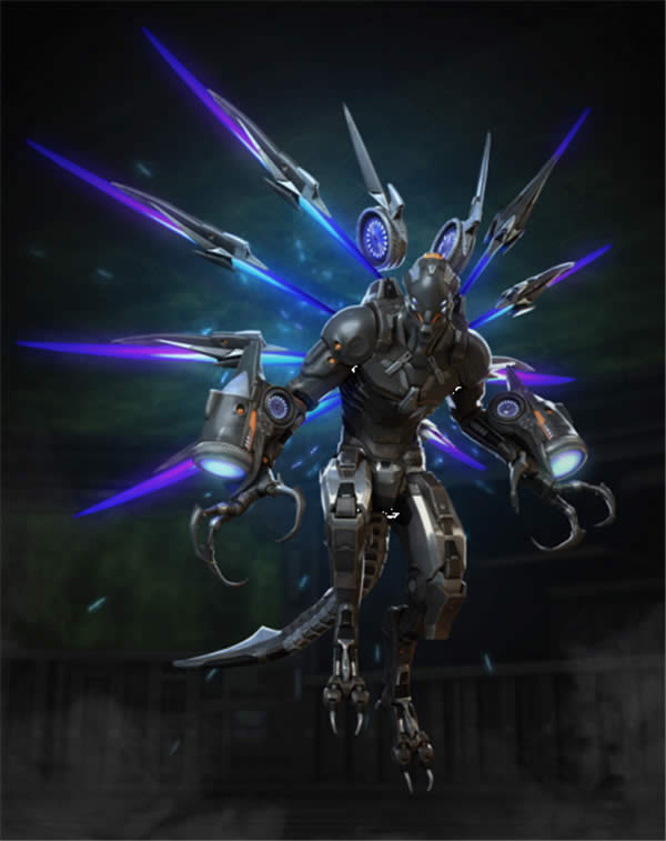 机械石像鬼是Blitz高超机械技术的代表作。Blitz将机械与生物技术进行融合,制造出了可以统领生物军团与机械军团双重军团的机械将领。它的代表招式可以将自身的能量注入到周围的空气中,形成广阔范围的能源波,威力巨大。