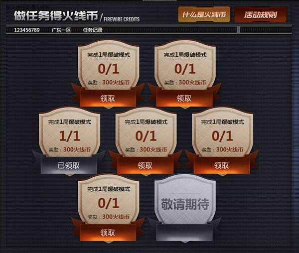 玩家每天会获得一个任务,完成即可获得300点火线币。