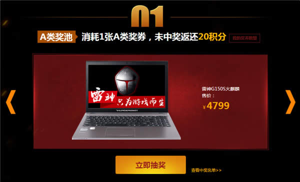 1)消耗1张A类奖券,未中奖返还20积分
