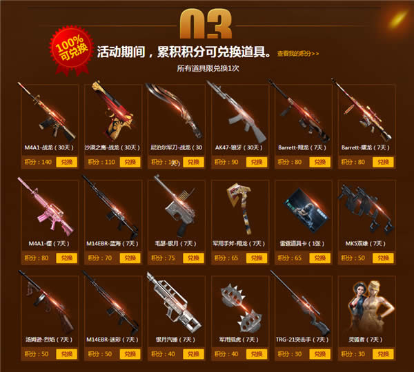 3)活动期间,累积积分可兑换道具