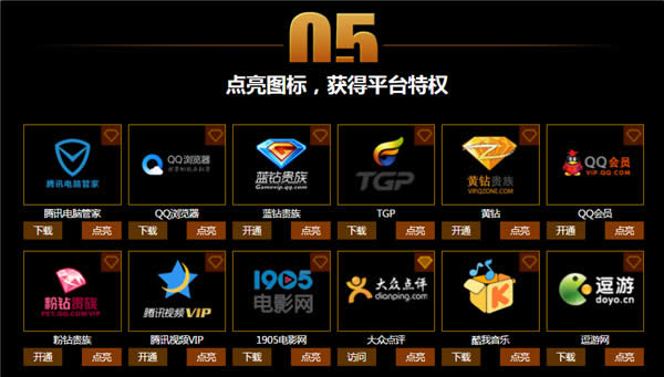 5)点亮图标,获得平台特权