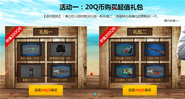 【活动规则】:单Q可以同时购买礼包一和礼包二,但每种礼包单Q仅限购买一次。