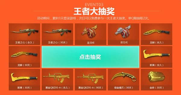 活动期间,累积3天登录游戏,次日可以免费参与一次王者大抽奖。单Q限抽取2次。