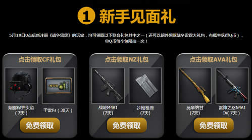 5月19日0点后新注册《战争雷霆》的玩家,均可领取以下联合礼包其中之一(还可以额外领取战争雷霆大礼包,有概率获得Q币),单Q币每个包限抽一次!