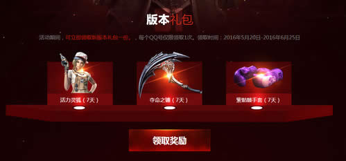 活动期间,可立即领取新版本礼包一份。,每个QQ号仅限领取1次。领取时间:2016年5月20日-2016年6月25日