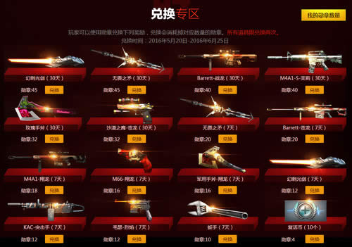 玩家可以使用勋章兑换下列奖励,兑换会消耗掉对应数量的勋章。所有道具限兑换两次。