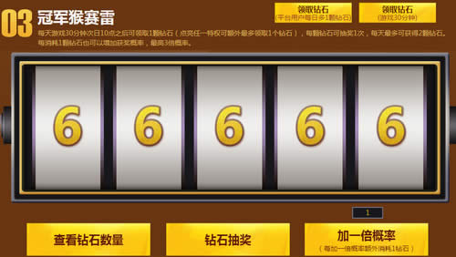 每消耗1颗钻石也可以增加获奖概率,最高3倍概率。