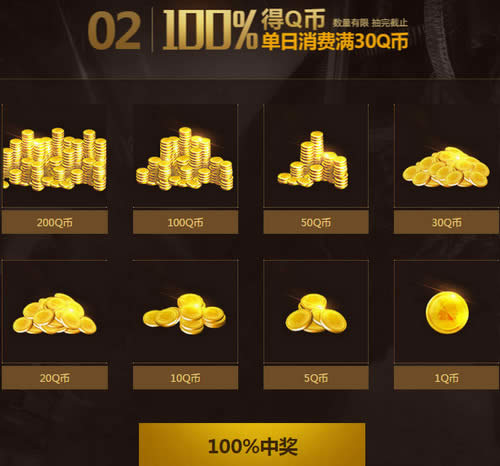 二、100%得Q币。单日消费满30Q币,数量有限抽完为止。