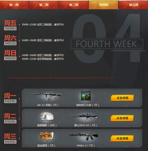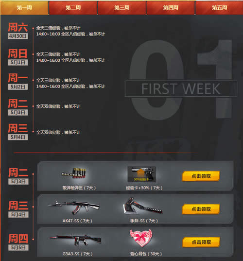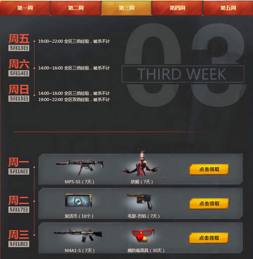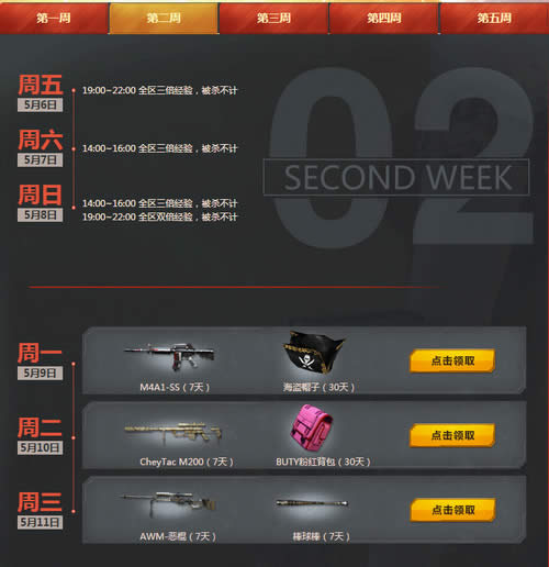 cf5月周末痛快玩活动地址 cf5月周末痛快玩活动每周参与免费领取武器道具