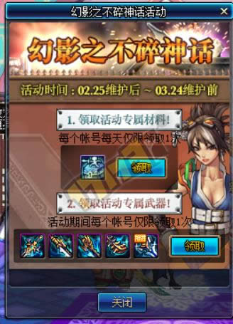 每个账号可领取一把武器(仅限一次) 武器属性貌似跟灵越相似,不过可以在活动NPC处强化不碎