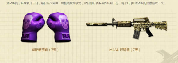 2、活动期间,玩家累计三日,每日至少完成一局极限轰炸模式,次日即可领取轰炸礼包一份