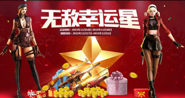 活动时间:2015年11月16日-2015年11月30日 红黄蓝幸运星奖励: 红色幸运星:黄金AK47(7天)黄金AWM(7天)Barrett-战龙(30天)沙漠之鹰-战龙(30天) 蓝色幸运星:黄金AK47(7天)Barrett-战龙(30天)沙漠之鹰-战龙(30天)尼泊尔-战龙(30天) 黄色幸运星:黄金AK47(30天)Barrett-战龙(30天)沙漠之鹰-战龙(30天)尼泊尔-战龙(30天) 下面是小编的幸运星资格,不要羡慕我!