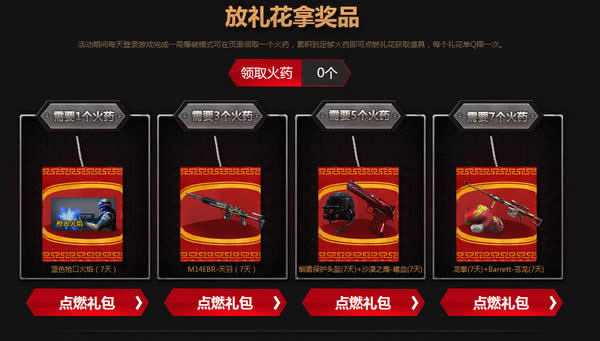 4.活动期间每天登录游戏完成一局爆破模式可在页面领取一个火药,累积到足够火药即可点燃礼花获取道具,每个礼花单Q限点一次。