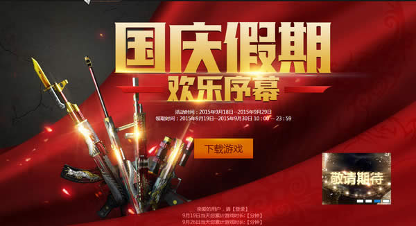 穿越火线CF国庆假期欢乐序幕活动来袭;本次活动是国庆前特意为大家准备的在线领奖活动;在9月19日特定时间累积在线就能领取奖励。下面我们就一起来看看cf9月19日在线领取奖励活动地址及奖励介绍吧!