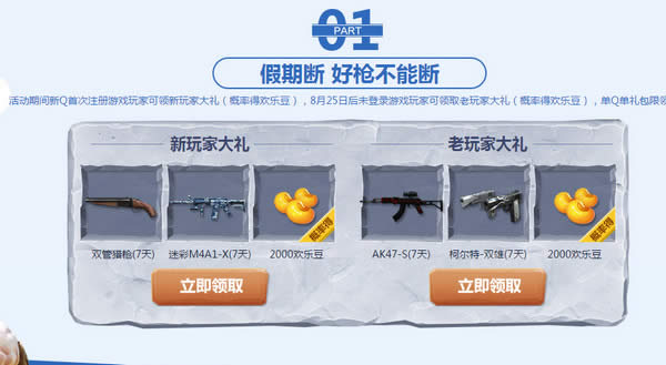 活动期间新Q首次注册游戏玩家可领新玩家大礼(概率得欢乐豆),8月25日后未登录游戏玩家可领取老玩家大礼(概率得欢乐豆),单Q单礼包限领一份。