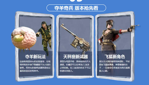 穿越火线CF9月新版本少年放开我的羊“夺羊奇兵”活动来袭;版本活动来啦,那么离新版本更新的时间也快到了,小伙伴们快来体验新版本新模式玩法吧!下面我们就先一起看看活动地址及奖励吧!