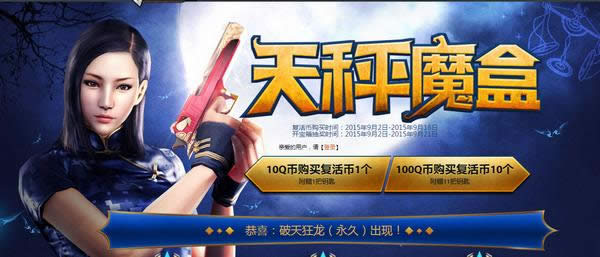 穿越火线CF天枰魔盒10Q币购买复活币抽永久武器活动来袭,10Q币购买复活币1个可获得一把钥匙,100Q币购买复活币10个可获得11把钥匙;使用钥匙可以打开宝箱,并获得对应的奖励道具;下面我们就一起来看看活动详情吧!