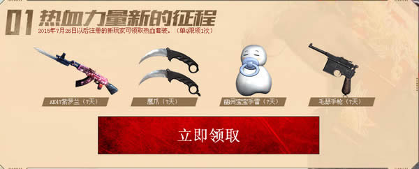 1、2015年7月26日以后注册的新玩家可领取热血套装,单Q限领一次;
