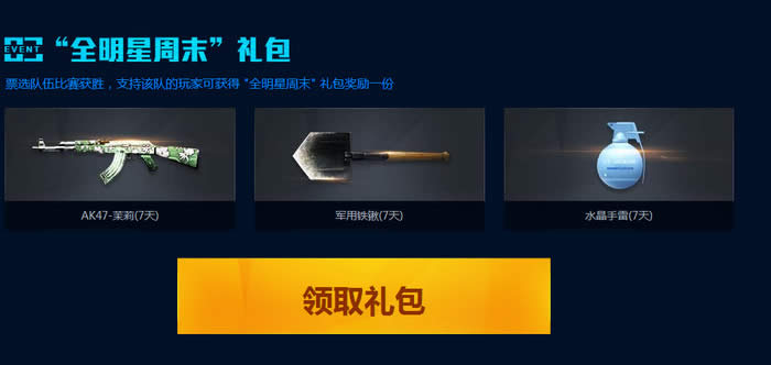 票选队伍比赛获胜,支持该队的玩家可获得 "全明星周末" 礼包奖励一份