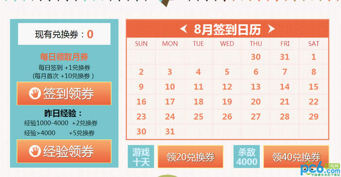 3.玩家每月第一次在月券系统页面签到可获得10点经验券;