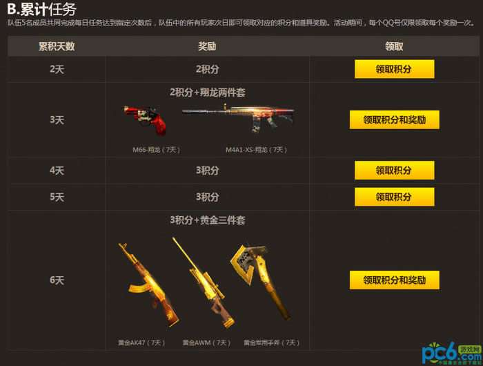 队伍5名成员共同完成每日任务达到指定次数后,队伍中的所有玩家次日即可领取对应的积分和道具奖励。活动期间,每个QQ号仅限领取每个奖励一次。