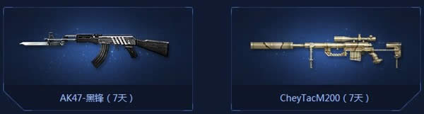 3星军饷:AK47-黑锋(7天)、CheyTacM200(7天)