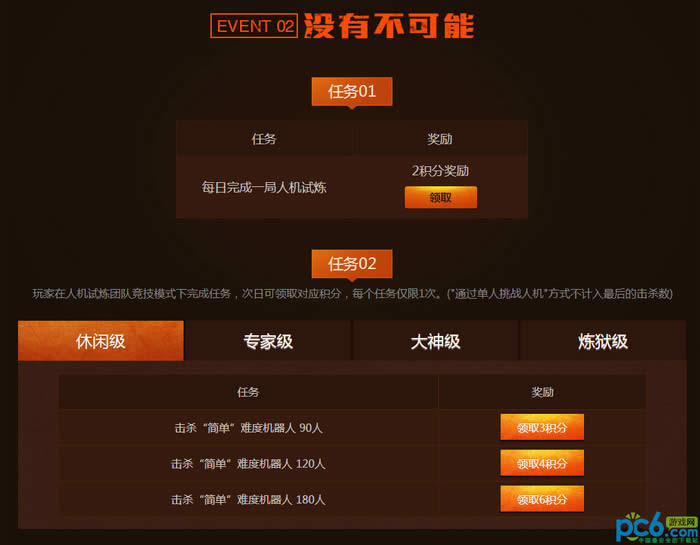 玩家在人机试炼团队竞技模式下完成任务,次日可领取对应积分,每个任务仅限1次。("通过单人挑战人机"方式不计入最后的击杀数)