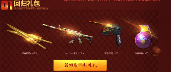 回归老兵可直接领取一份回归礼包。