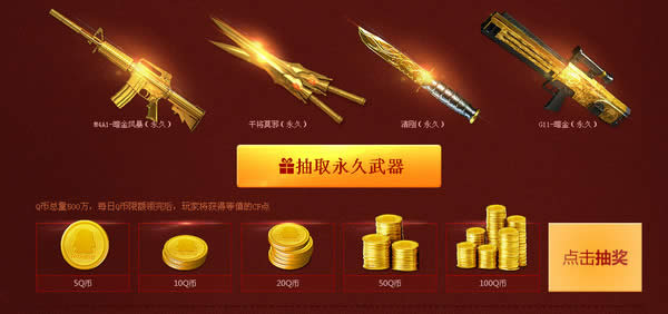 回归老兵回归后,累计登陆8天,次日即可抽取永久武器一次、抽取Q币一次,100%中奖。每个QQ账号仅可参与一次永久武器抽取和一次Q币抽取。