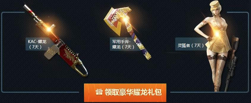 在6月18日至7月1日之间,幸运星用户将CF客户端版本更新至最新版本,次日即可领取豪华耀龙礼包