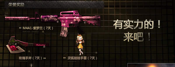 cf穿越火线精英军火库活动6月再次开启,本期军火库活动可领取M4A1-紫罗兰、玫瑰手斧、灵狐娃娃手雷荣誉奖励。下面为大家带来奖励领取地址,有实力的玩家赶紧来领取吧!