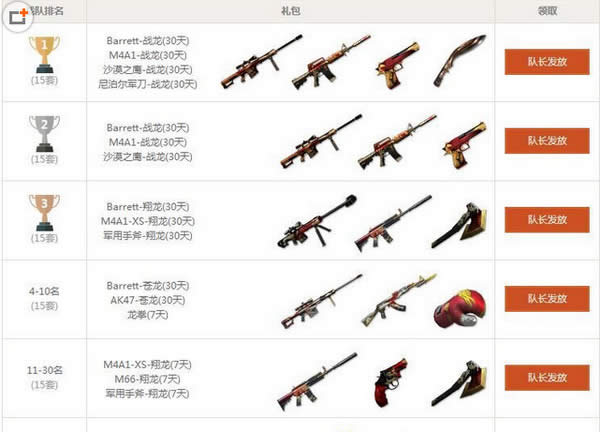 战队奖励: